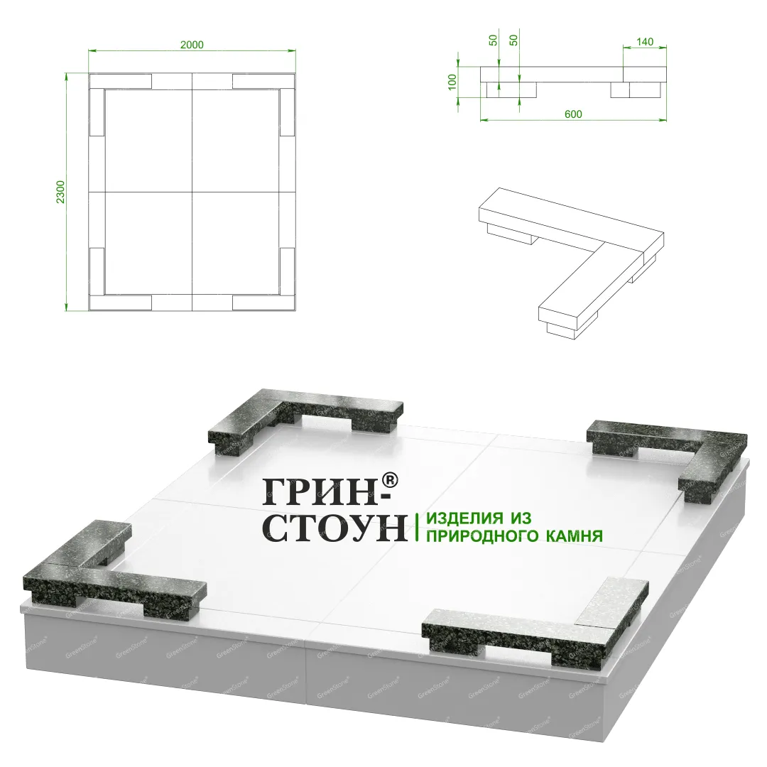 Гранитная ограда серии ГО-30 является традиционным и привычным декоративным элементом любой надгробной композиции. В исполнении ГО-30-03 материалом для изготовления является гранит Baltic Green (Финляндия). В качестве дополнительного декора в таких изделиях мы часто используем трубчатые элементы из нержавеющей стали.
