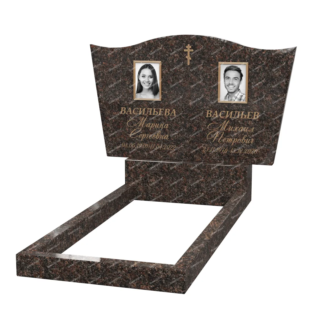 Типовой размер стелы двойного памятника составляет 60×100×5см., однако мы готовы изготовить его в соответствии с любым размером по желанию Заказчика. Цветовое исполнение также не ограничивается традиционным черным цветом. Это может быть гранит Елизовский (Россия), как в данном исполнении, или любой другой из более чем 20 сортов гранита, который вызовет у Вас только самые положительные эмоции.