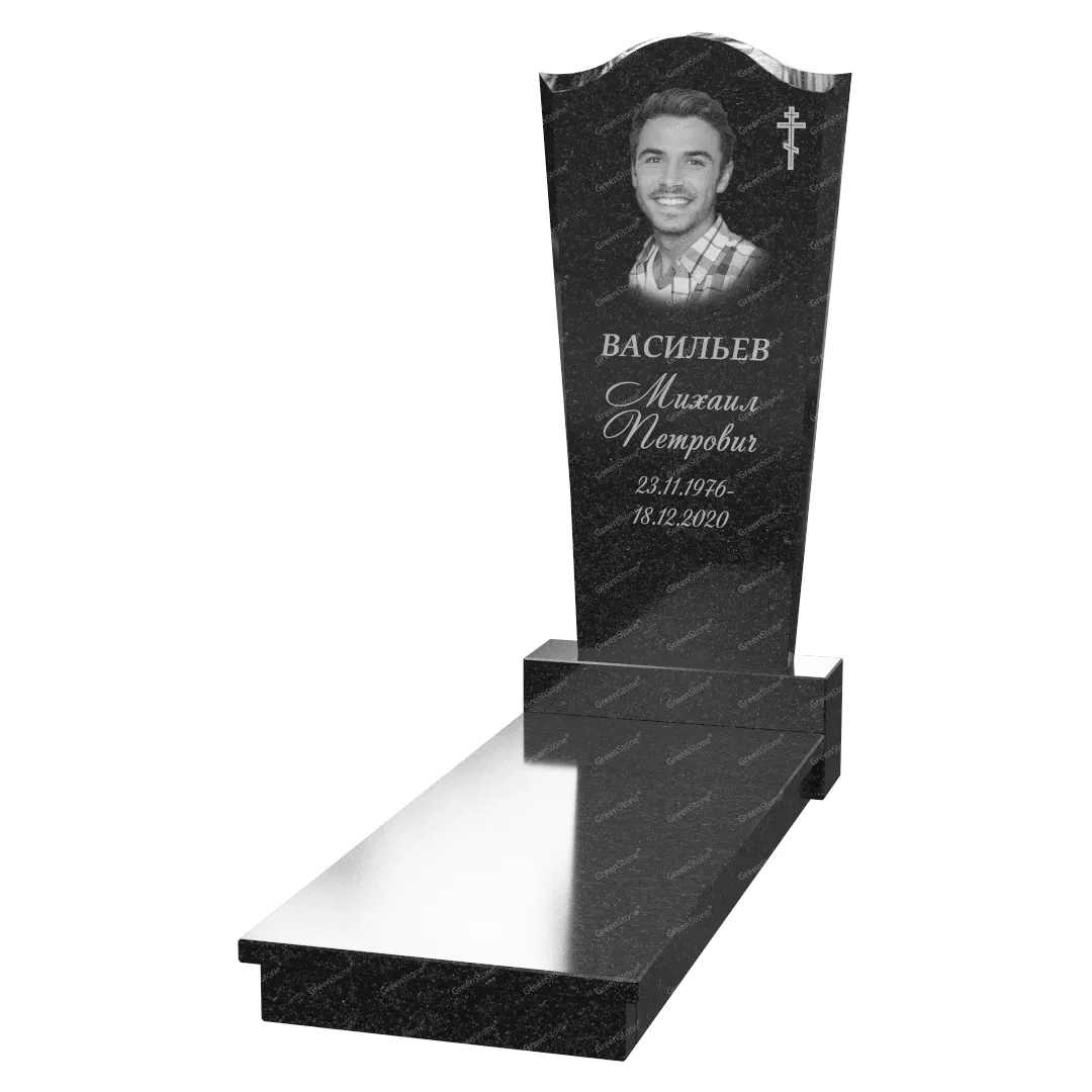 Гранитный памятник в недорогом исполнении – такой, как AB-15 – представляет собой изделие из качественного гранита. Все его параметры, кроме высоты стелы, соответствуют параметрам типовой формы. Поэтому никакого компромисса по качеству в данном памятнике нет. Более того, гранит Габбро-Диабаз (Россия) мы можем заменить на любой другой из более чем 20 сортов камня. Поэтому даже, заказывая недорогое по цене изделие, вы приобретаете неизменное качество бренда Грин-Стоун.