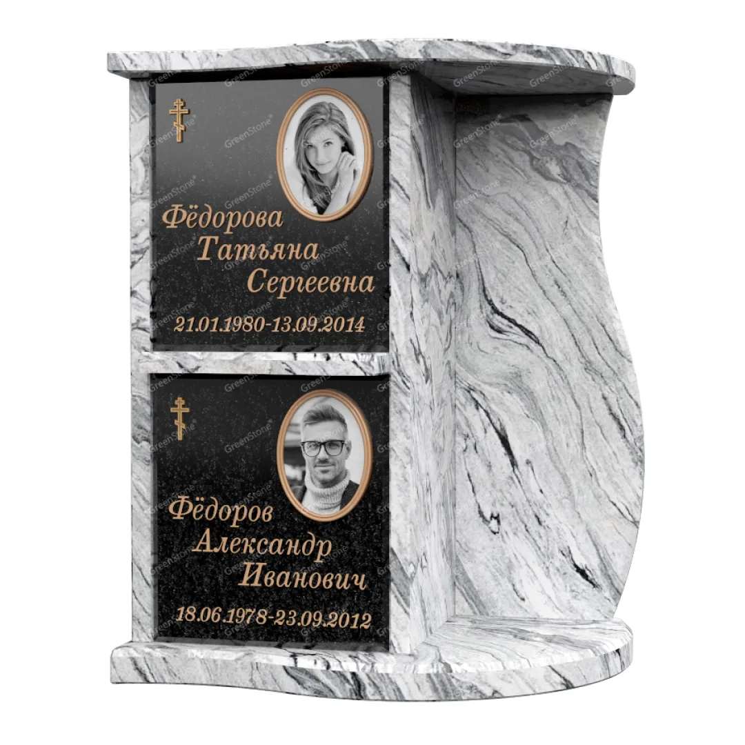 Кремация давно вошла в разряд привычных ритуальных услуг, а изготовление колумбариев стало обязательным элементом в портфолио услуг каждого серьезного изготовителя памятников. Изделие КЛ-03-2 является представителем данной линии продукции компании Грин-Стоун. Каждый наш колумбарий мы изготавливаем из двух видов камня. В данном исполнении основным является черный Габбро-Диабаз (Россия), а цветной Viscont White (Индия) дополняет композицию и усиливает восприятие изделия в целом.