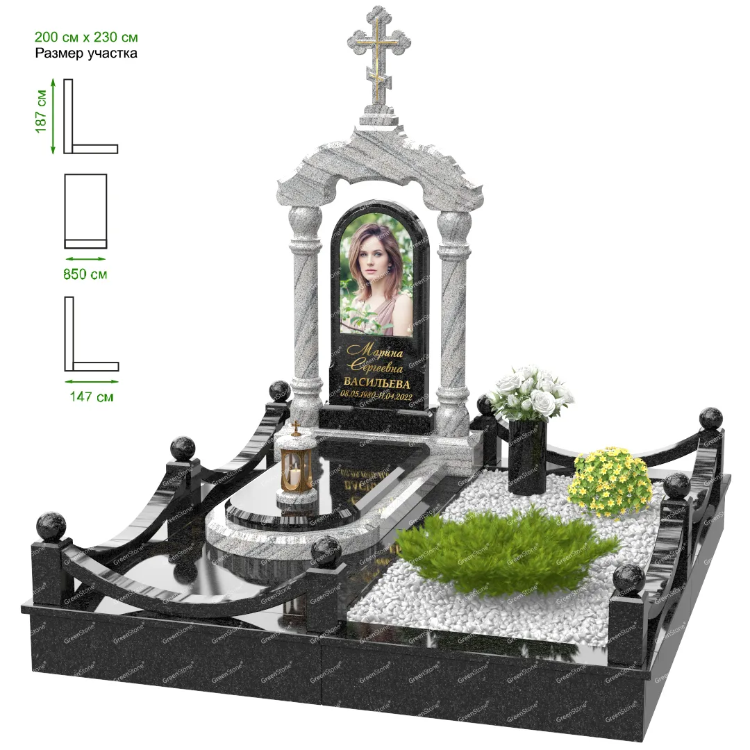 Мемориальный комплекс или просто мемориал модели – это сложное изделие из натурального гранита, включающее в себя сам памятник, ограду и предварительно проработанный вариант установки. Для изготовления модели MS-13 использовано сочетание гранитов Carrara (Италия) и (). Благодаря этому мемориал выглядит дорого и основательно. Художественный образ, может быть дополнен монтажом бронзовых аксессуаров итальянского бренда Caggiati, включая изысканные буквы, формирующие надпись на стеле.
