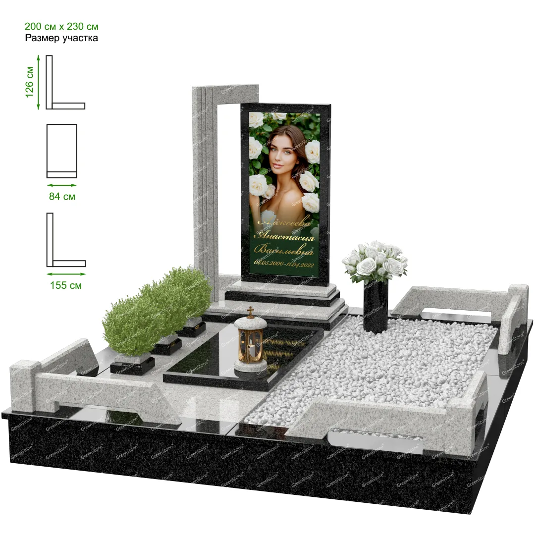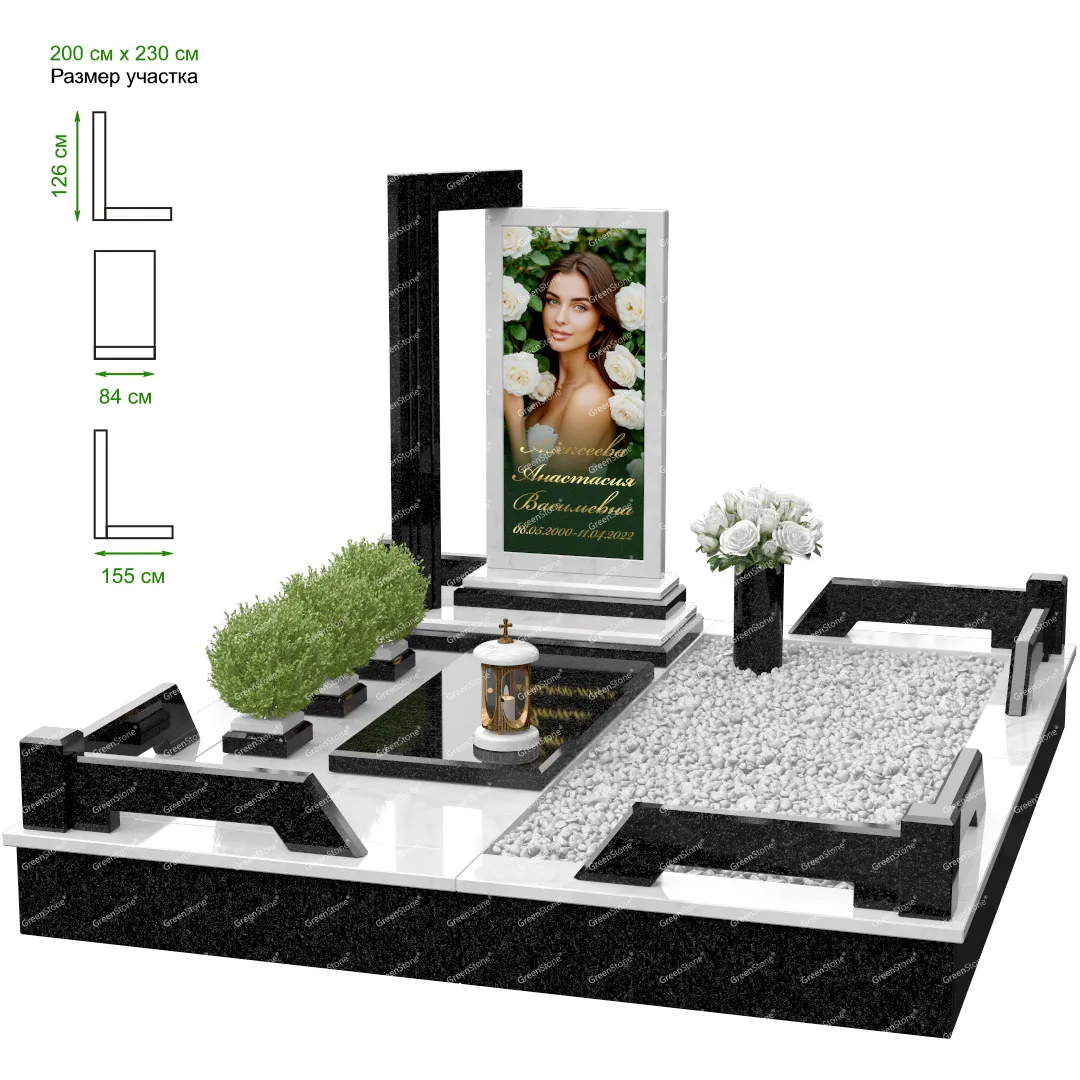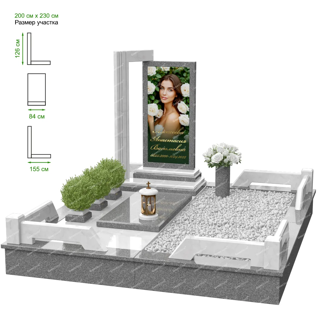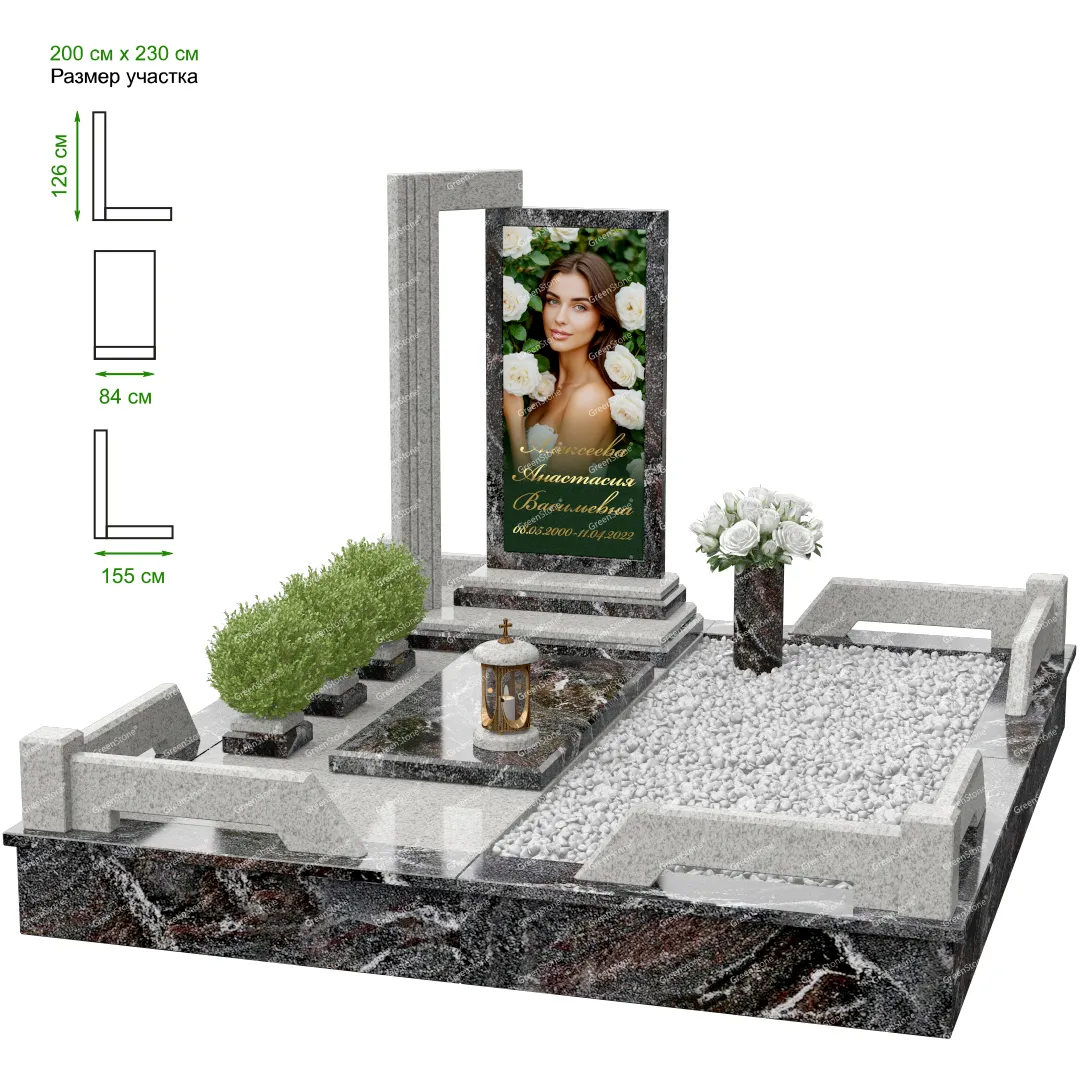 Мемориальный комплекс или просто мемориал модели – это сложное изделие из натурального гранита, включающее в себя сам памятник, ограду и предварительно проработанный вариант установки. Для изготовления модели MS-31 использовано сочетание гранитов Baltic Green (Финляндия) и Juparana (Индия). Благодаря этому мемориал выглядит дорого и основательно. Художественный образ, может быть дополнен монтажом бронзовых аксессуаров итальянского бренда Caggiati, включая изысканные буквы, формирующие надпись на стеле.