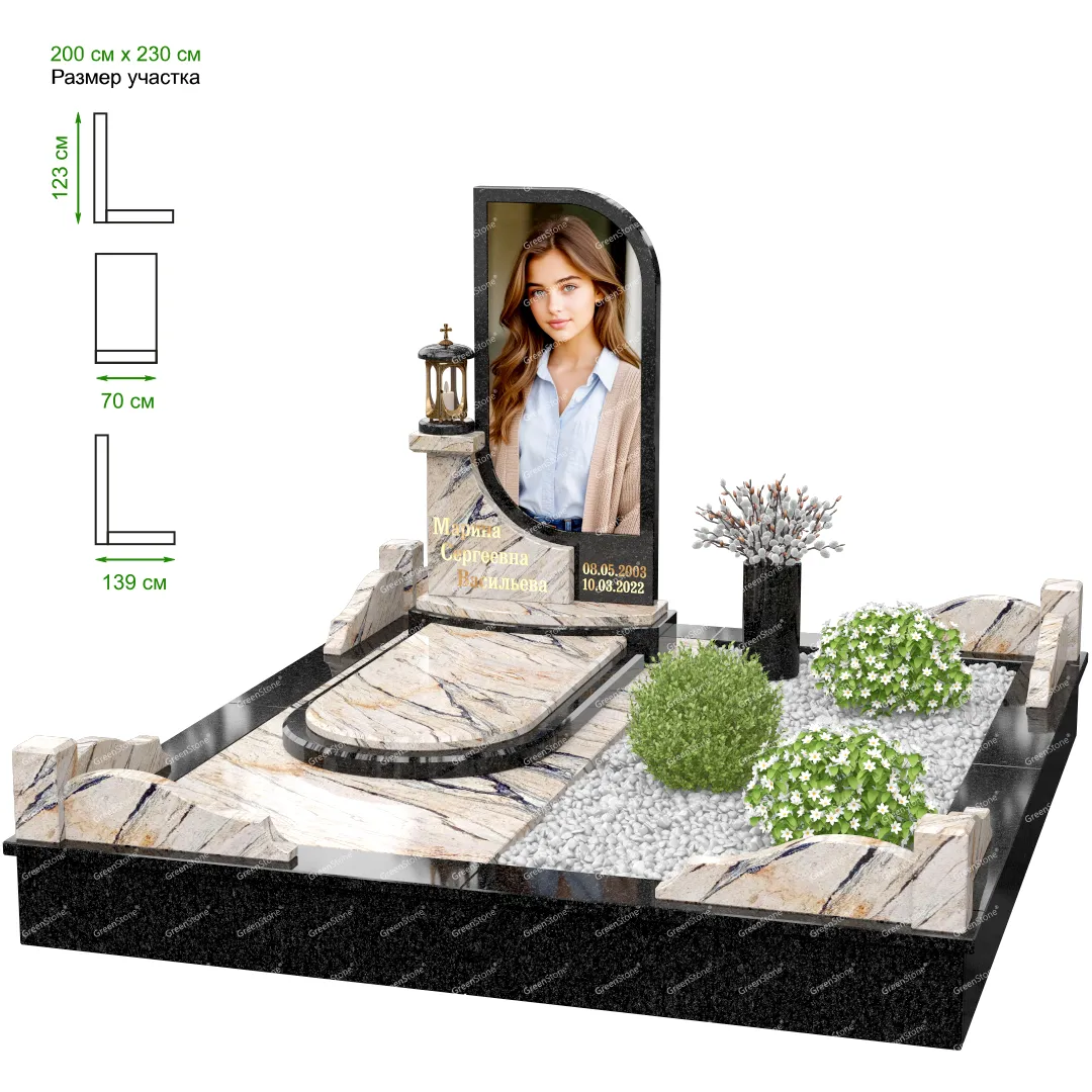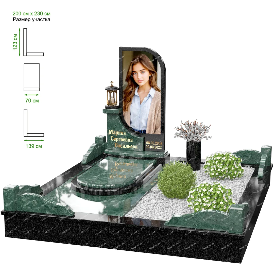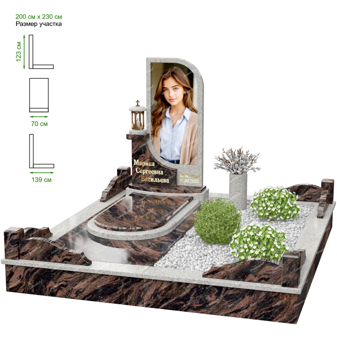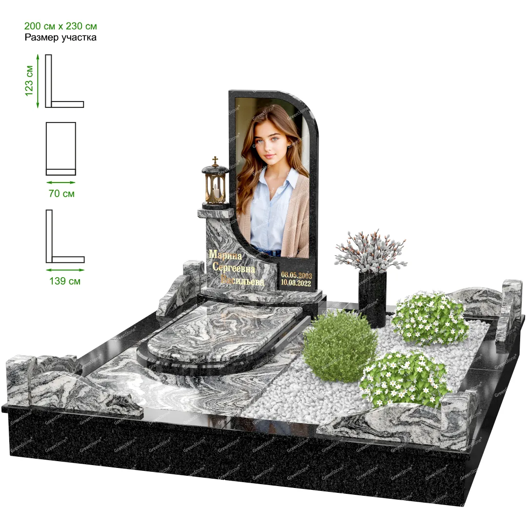 Мемориальный комплекс или просто мемориал модели – это сложное изделие из натурального гранита, включающее в себя сам памятник, ограду и предварительно проработанный вариант установки. Для изготовления модели MS-41 использовано сочетание гранитов Габбро-Диабаз (Россия) и Silk (Индия). Благодаря этому мемориал выглядит дорого и основательно. Художественный образ, может быть дополнен монтажом бронзовых аксессуаров итальянского бренда Caggiati, включая изысканные буквы, формирующие надпись на стеле.