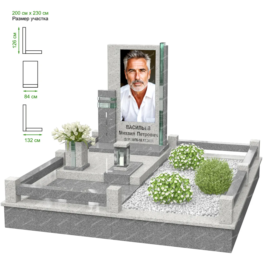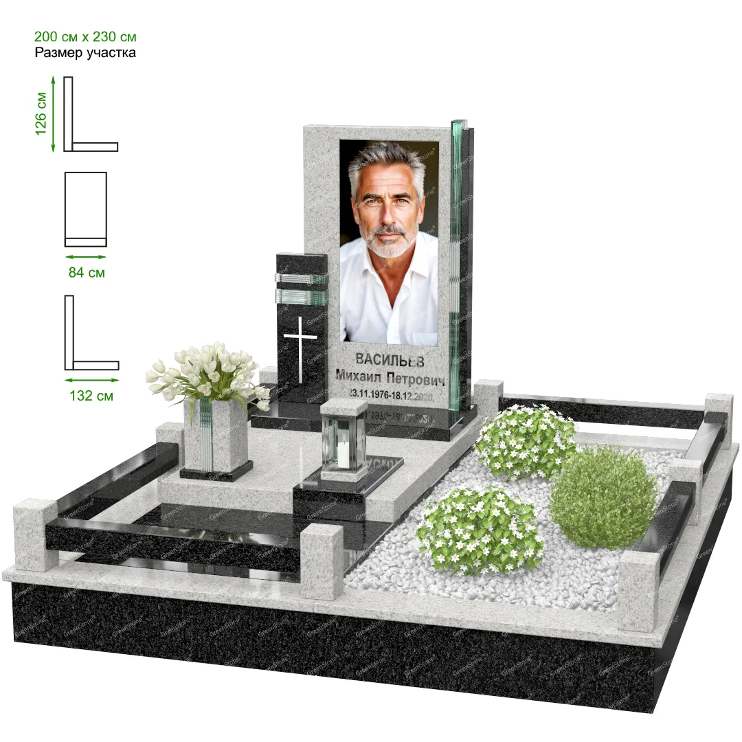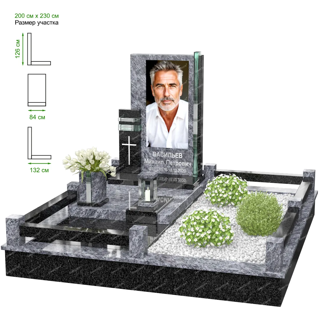 Мемориальный комплекс или просто мемориал модели – это сложное изделие из натурального гранита, включающее в себя сам памятник, ограду и предварительно проработанный вариант установки. Для изготовления модели MS-42 использовано сочетание гранитов Мансуровский (Россия) и Куру-Грей (Финляндия). Благодаря этому мемориал выглядит дорого и основательно. Художественный образ, может быть дополнен монтажом бронзовых аксессуаров итальянского бренда Caggiati, включая изысканные буквы, формирующие надпись на стеле.