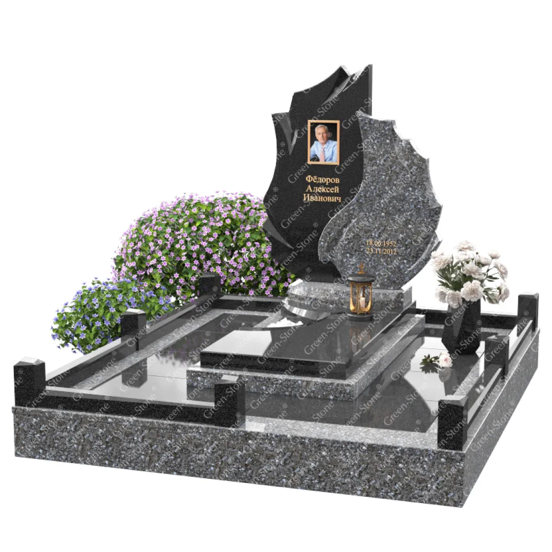 Мемориальный комплекс или просто мемориал модели – это сложное изделие из натурального гранита, включающее в себя сам памятник, ограду и предварительно проработанный вариант установки. Для изготовления модели MS-5 использовано сочетание гранитов Габбро-Диабаз (Россия) и Blue Pearl (Норвегия). Благодаря этому мемориал выглядит дорого и основательно. Художественный образ, может быть дополнен монтажом бронзовых аксессуаров итальянского бренда Caggiati, включая изысканные буквы, формирующие надпись на стеле.