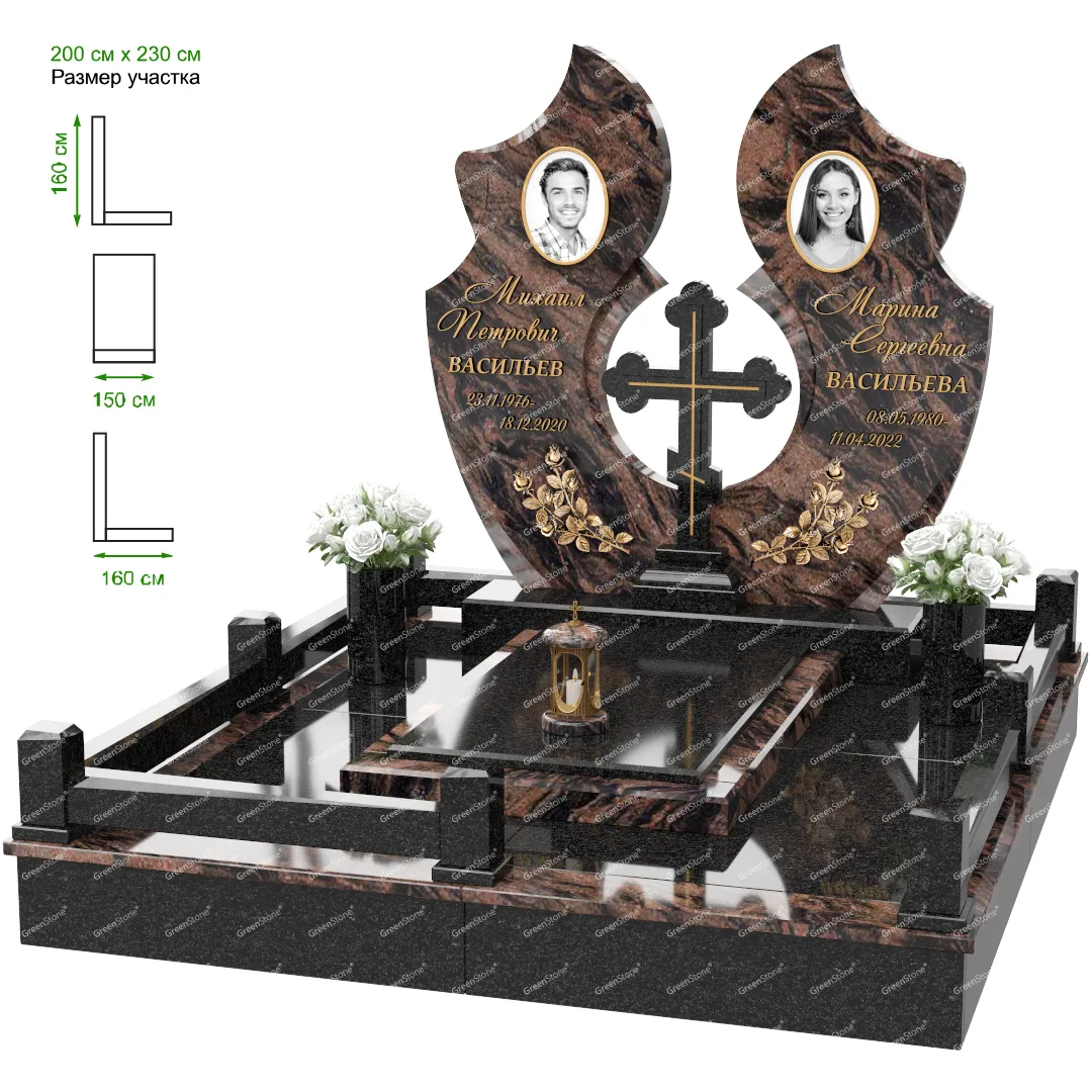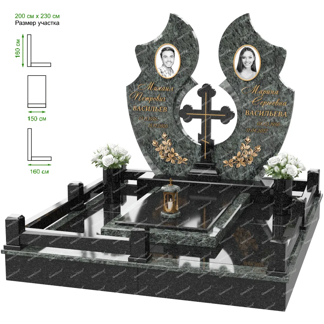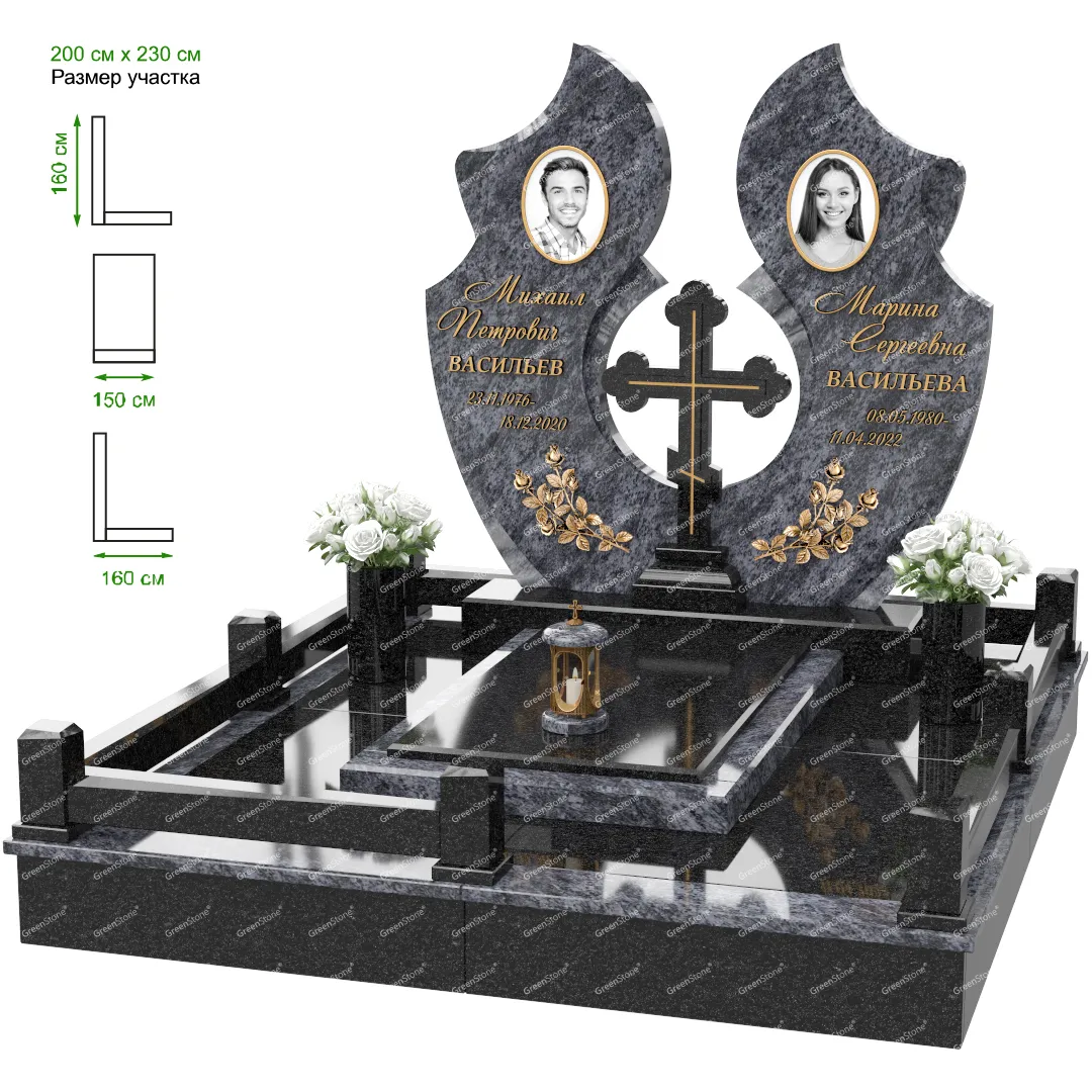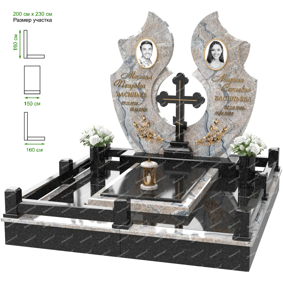 Мемориальный комплекс или просто мемориал модели – это сложное изделие из натурального гранита, включающее в себя сам памятник, ограду и предварительно проработанный вариант установки. Для изготовления модели MS-6 использовано сочетание гранитов Indian Aurora (Индия) и Габбро-Диабаз (Россия). Благодаря этому мемориал выглядит дорого и основательно. Художественный образ, может быть дополнен монтажом бронзовых аксессуаров итальянского бренда Caggiati, включая изысканные буквы, формирующие надпись на стеле.