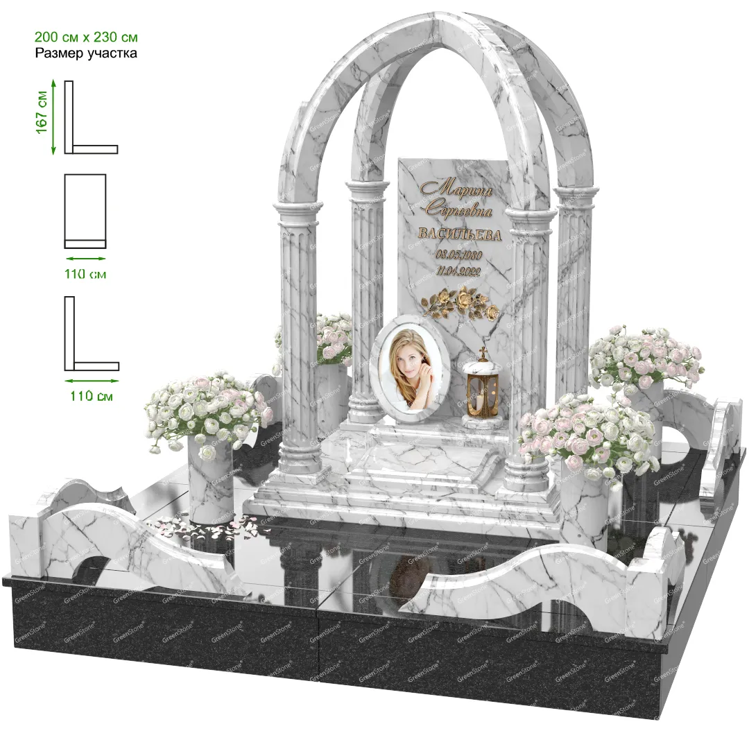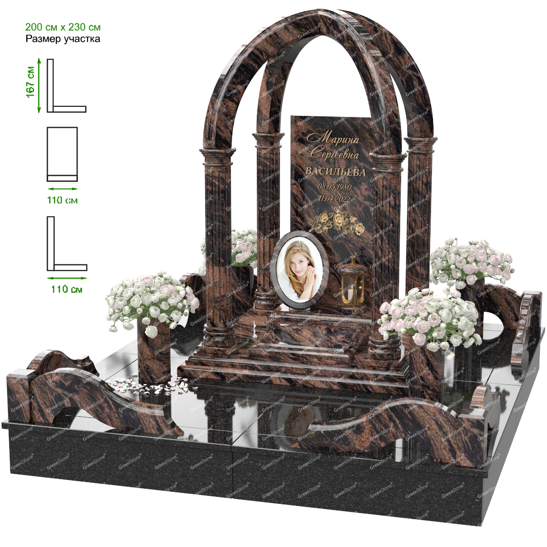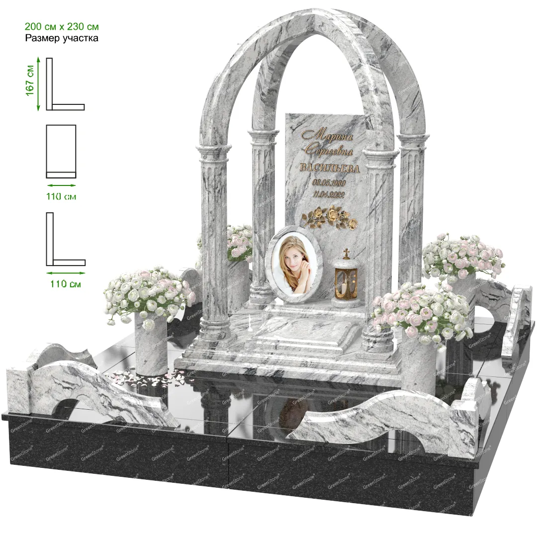 Мемориальный комплекс или просто мемориал модели – это сложное изделие из натурального гранита, включающее в себя сам памятник, ограду и предварительно проработанный вариант установки. Для изготовления модели MS-10 использовано сочетание гранитов Viscont White (Индия) и (). Благодаря этому мемориал выглядит дорого и основательно. Художественный образ, может быть дополнен монтажом бронзовых аксессуаров итальянского бренда Caggiati, включая изысканные буквы, формирующие надпись на стеле.