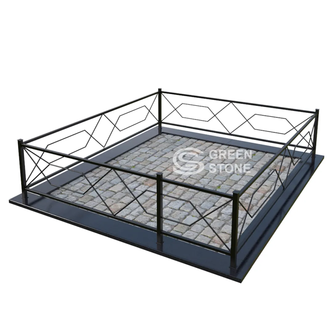 Металлическая ограда МО-01 размером 230×200см. является недорогим, но при этом универсальным решением для оформления захоронения. Практически любая ограда из металла прекрасно сочетается с любым гранитом – черным или цветным. А при правильной установке на фундамент вопросы к ее внешнему виду не должны возникать в течение достаточно долгого времени.