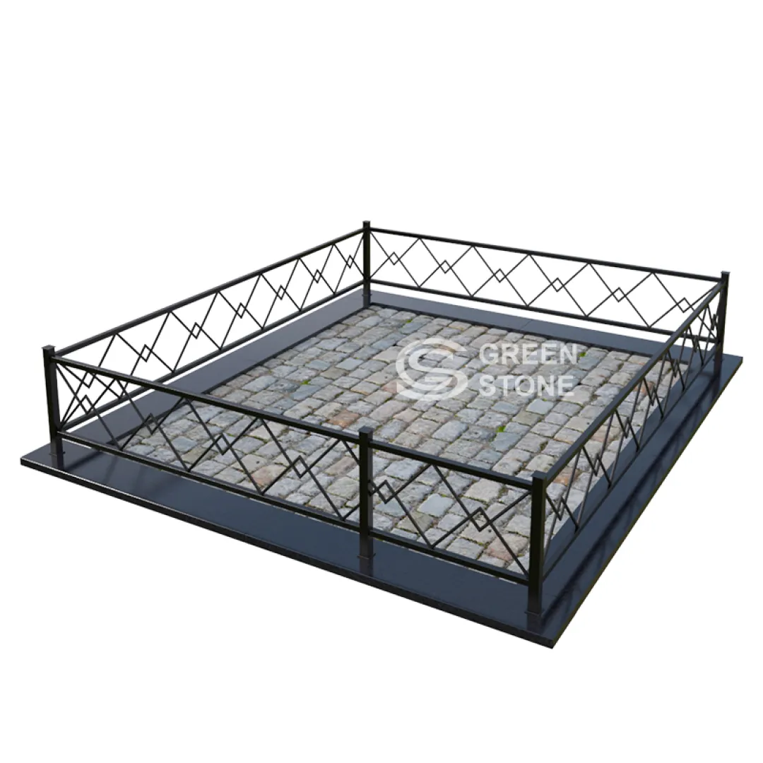 Металлическая ограда МО-06 размером 230×200см. является недорогим, но при этом универсальным решением для оформления захоронения. Практически любая ограда из металла прекрасно сочетается с любым гранитом – черным или цветным. А при правильной установке на фундамент вопросы к ее внешнему виду не должны возникать в течение достаточно долгого времени.
