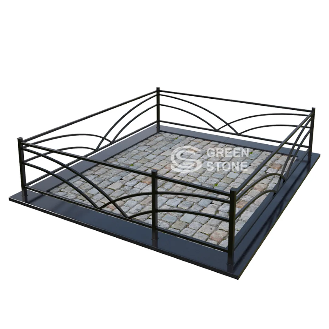 Металлическая ограда МО-08 размером 230×200см. является недорогим, но при этом универсальным решением для оформления захоронения. Практически любая ограда из металла прекрасно сочетается с любым гранитом – черным или цветным. А при правильной установке на фундамент вопросы к ее внешнему виду не должны возникать в течение достаточно долгого времени.