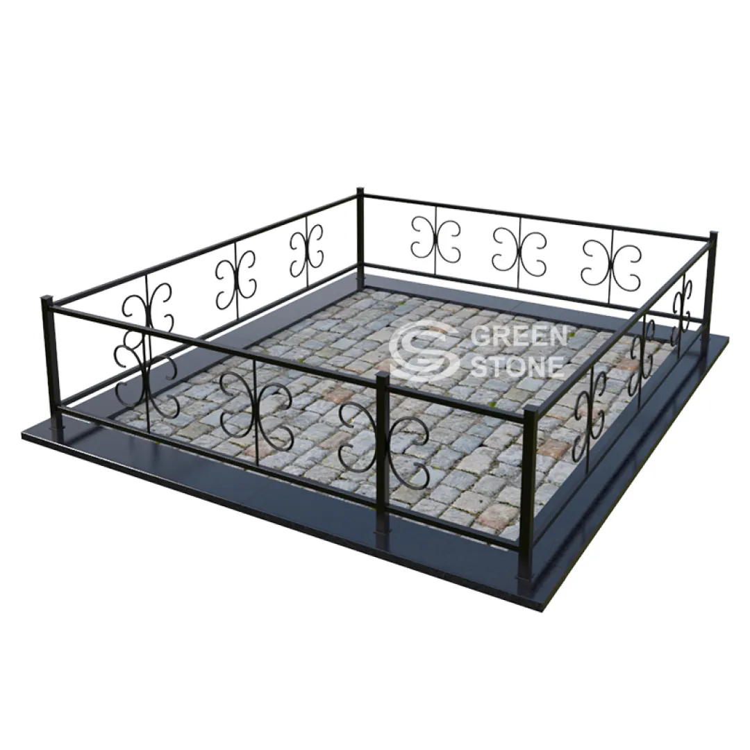 Металлическая ограда МО-13 размером 230×200см. является недорогим, но при этом универсальным решением для оформления захоронения. Практически любая ограда из металла прекрасно сочетается с любым гранитом – черным или цветным. А при правильной установке на фундамент вопросы к ее внешнему виду не должны возникать в течение достаточно долгого времени.