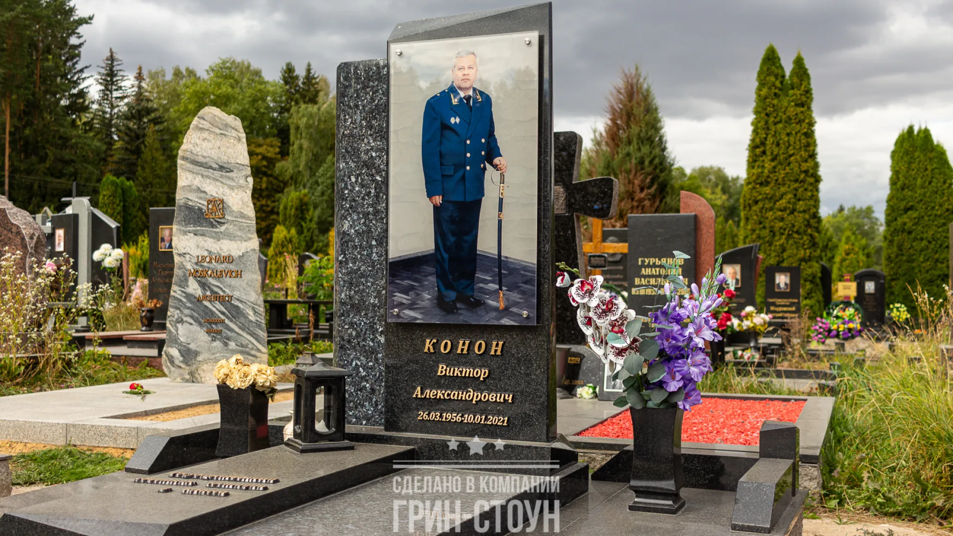 Памятники известным людям - это ответственная задача. Важно не только качественно выполнить работу, но и максимально отразить в мемориальной архитектуре значимость общественной деятельности выдающегося человека, дело его жизни. Конон Виктор Александрович - Почетный работник органов прокуратуры Республики Беларусь. Мемориальный комплекс его памяти, несомненно, должен был подчеркнуть специфику деятельности, которой он посвятил свою жизнь.
