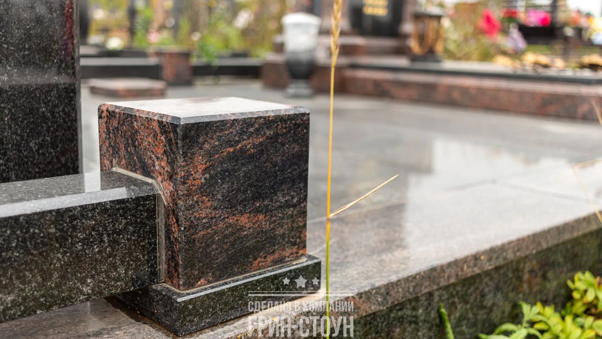 Ещё одной особенностью комплекса стала укладка гранитной плитки с возможностью демонтажа. Учитывая четверной размер участка, его планируется использовать для подзахоронений. При традиционной укладке гранитной плитки её пришлось бы в последующем снимать, и она могла бы поломаться. Другой вариант, без плитки на свободной части, подразумевает в перспективе необходимость докупать плитку, которая будет уже существенно олтичаться по цвету и структуре. В представленном варианте плитку можно легко демонтировать без повреждений, сделать захоронение и вернуть плитку на место.