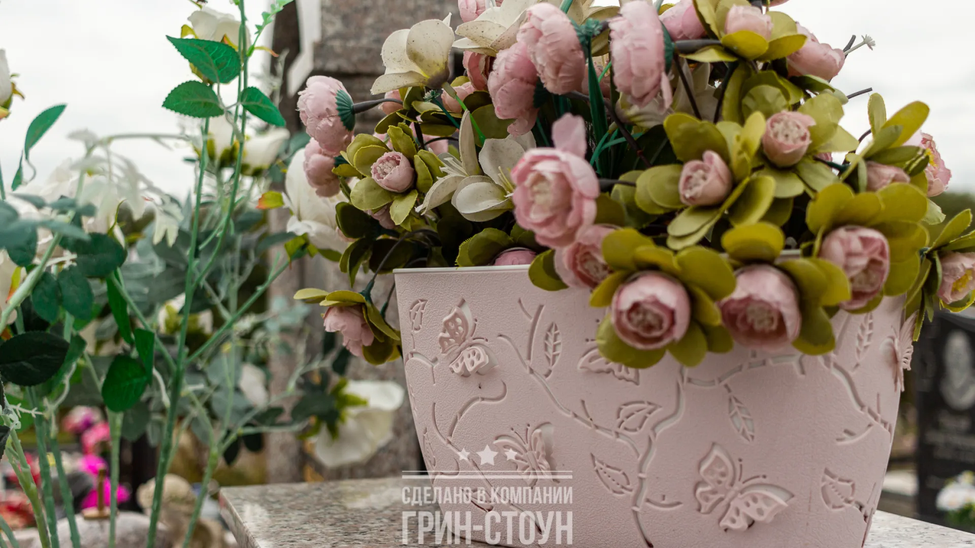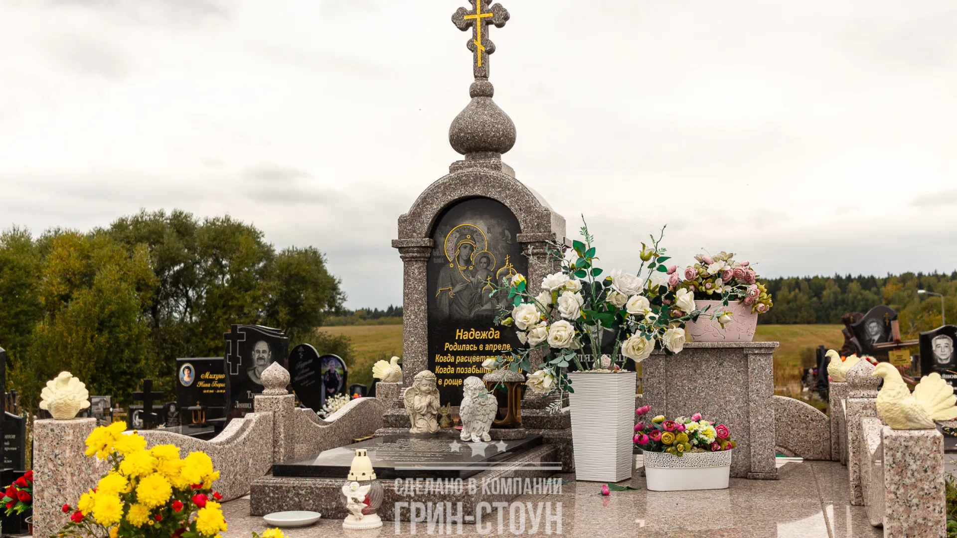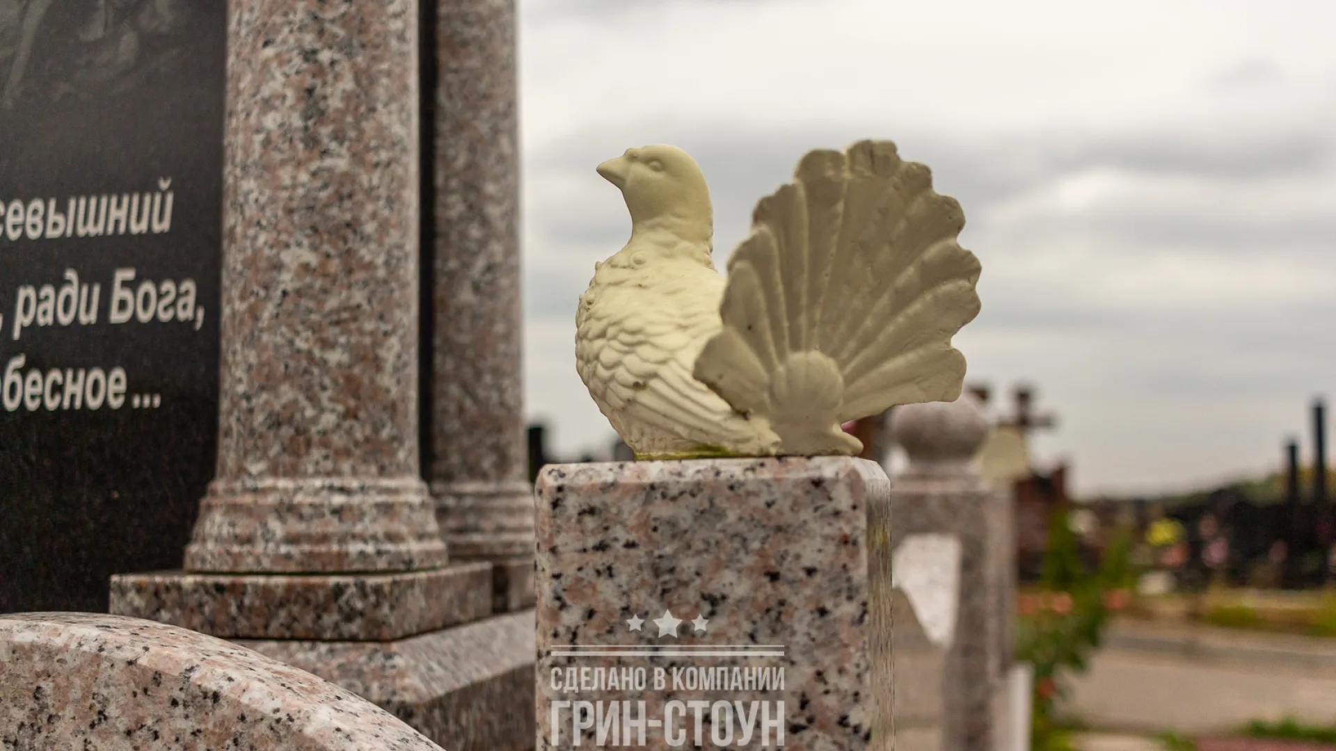 Памятник обильно украшен аксессуарами: кашпо с декоративными цветами, полимерные фигурки агелочков и голубей. Искусственные декоративные растения требуют ухода, обновления, но если Заказчики готовы посвящать этому личное время, можно поддерживать украшения в достойном виде. Если такой возможности нет, лучше ограничиться минимальным количеством аксессуаров, не требующих ухода.