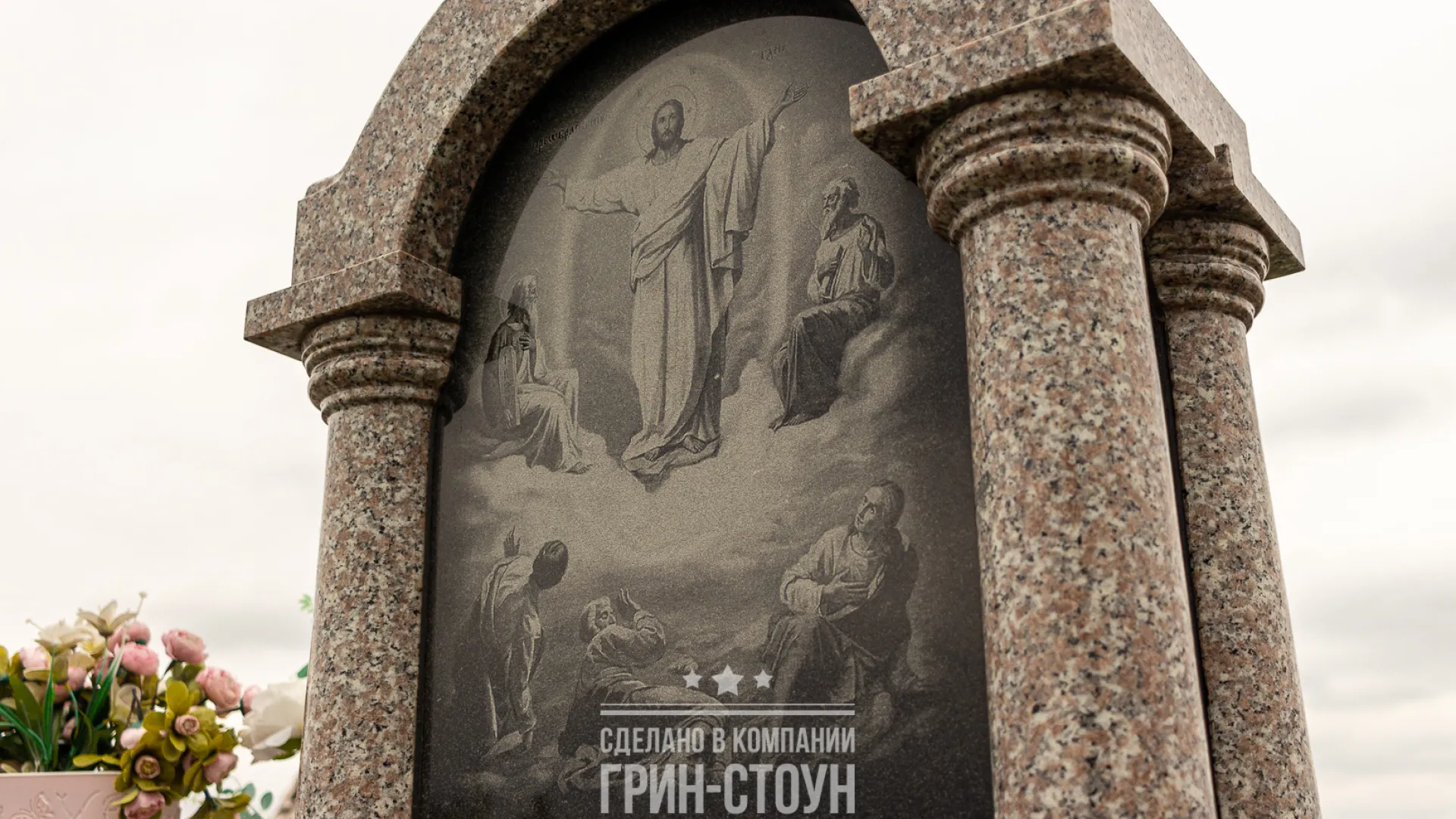 Лицевая часть памятника оформлена гравировкой с сусальным золотом, обратная – гравировкой.