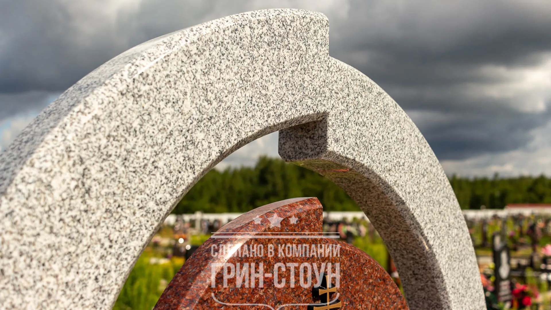 Гранитный комплекс из гранита Imperial Red с ассиметричной аркой
