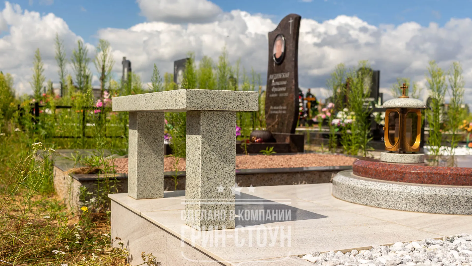 Установка памятника произведена на свайно-ростверковый фундамент с облицовкой. Комлекс дополнен небольшими гранитными уголками на второй половине захоронения. Завершает конструкцию скамейка из мансуровского гранита. Небольшая, лаконичная, она аккуратно вписывается в композицию мемориального комплекса не нарушая гармонию форм. Несмотря на уже существующий в наличии памятник, при заказе мемориального комплекса с установкой, мы предлагаем заказчикам возможность воспользоваться услугой бесплатного 3d моделирования в инженерной программе, чтобы убедиться, что все элементы надгробия идеально сочетаются между собой по форме, цвету и пропорциям. Именно потому наши заказчики остаются довольными такими красивыми и современными проектами.
