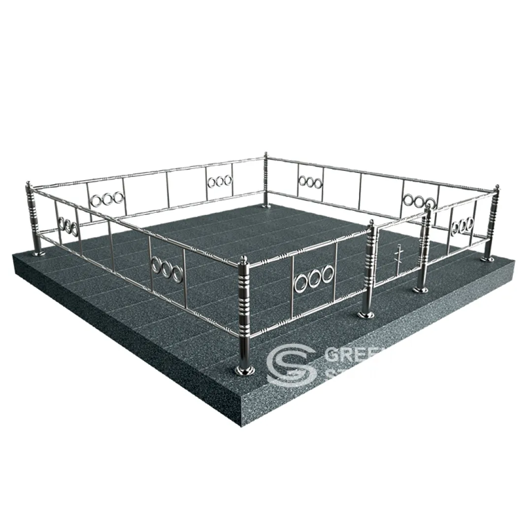 Ограды из нержавейки занимают промежуточную нишу и, пожалуй, являются одним из наиболее сбалансированных и универсальных решений для создания ограждения на участке с захоронением. Вариант ОН-08 высотой 34см. станет прекрасным выбором для оформления композиции любого размера. Нержавейка выглядит нарядно и радикально снижает градус трагизма, украшая даже массивные черные мемориалы.