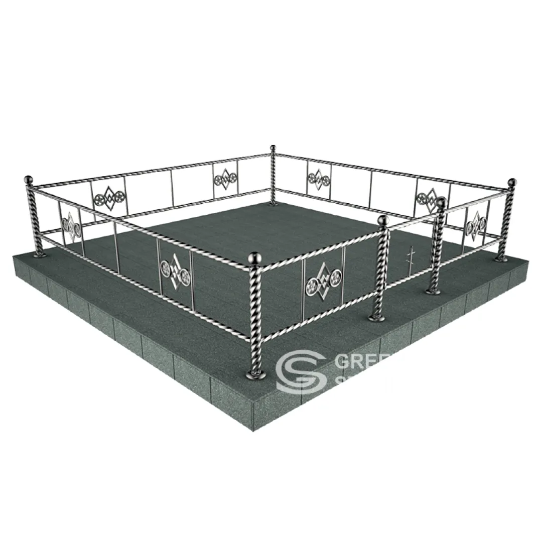 Ограды из нержавейки занимают промежуточную нишу и, пожалуй, являются одним из наиболее сбалансированных и универсальных решений для создания ограждения на участке с захоронением. Вариант ОН-09 высотой 34см. станет прекрасным выбором для оформления композиции любого размера. Нержавейка выглядит нарядно и радикально снижает градус трагизма, украшая даже массивные черные мемориалы.