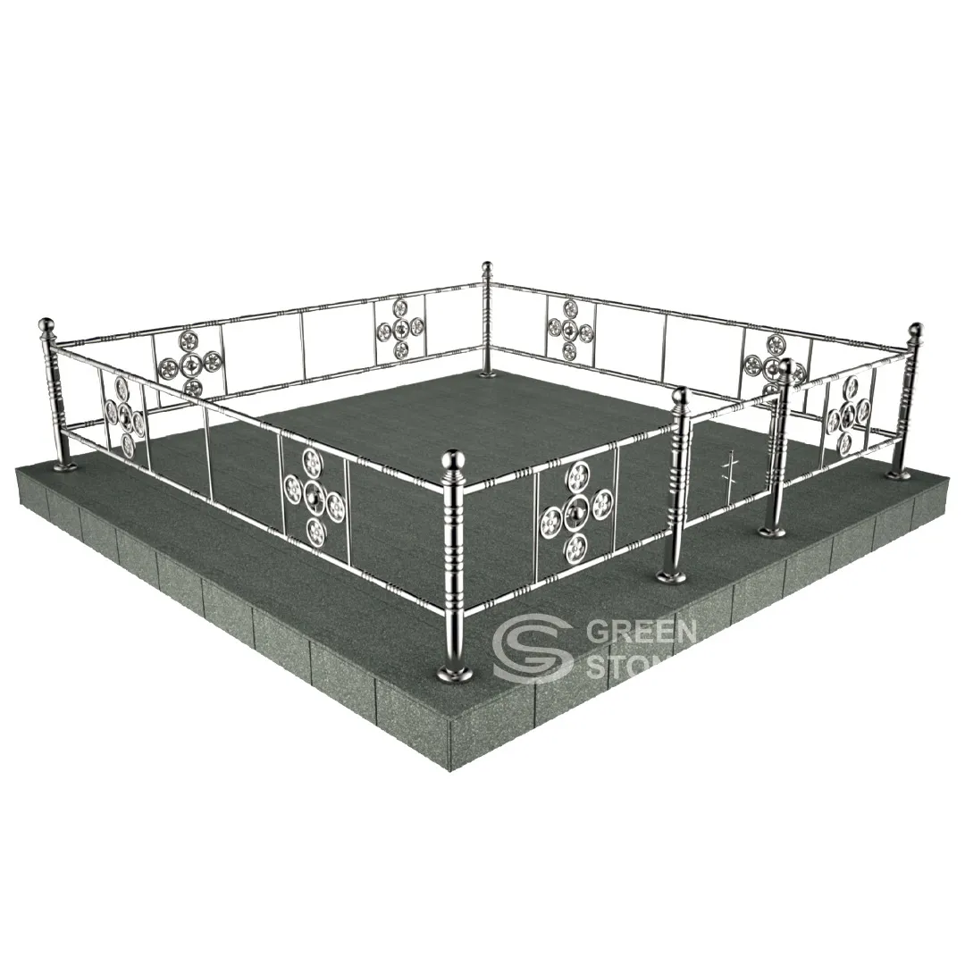 Ограды из нержавейки занимают промежуточную нишу и, пожалуй, являются одним из наиболее сбалансированных и универсальных решений для создания ограждения на участке с захоронением. Вариант ОН-11 высотой 34см. станет прекрасным выбором для оформления композиции любого размера. Нержавейка выглядит нарядно и радикально снижает градус трагизма, украшая даже массивные черные мемориалы.