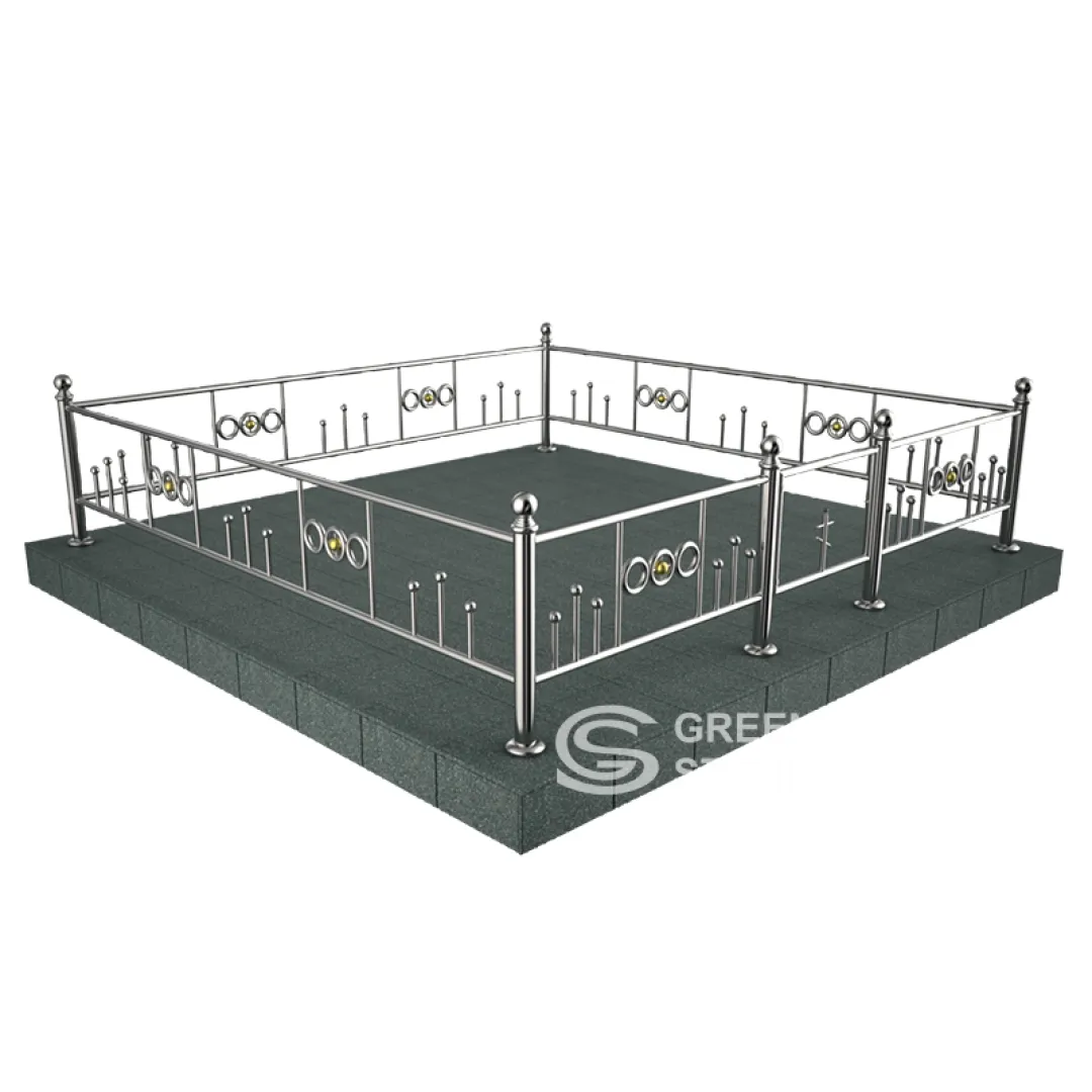 Ограды из нержавейки занимают промежуточную нишу и, пожалуй, являются одним из наиболее сбалансированных и универсальных решений для создания ограждения на участке с захоронением. Вариант ОН-17 высотой 34см. станет прекрасным выбором для оформления композиции любого размера. Нержавейка выглядит нарядно и радикально снижает градус трагизма, украшая даже массивные черные мемориалы.