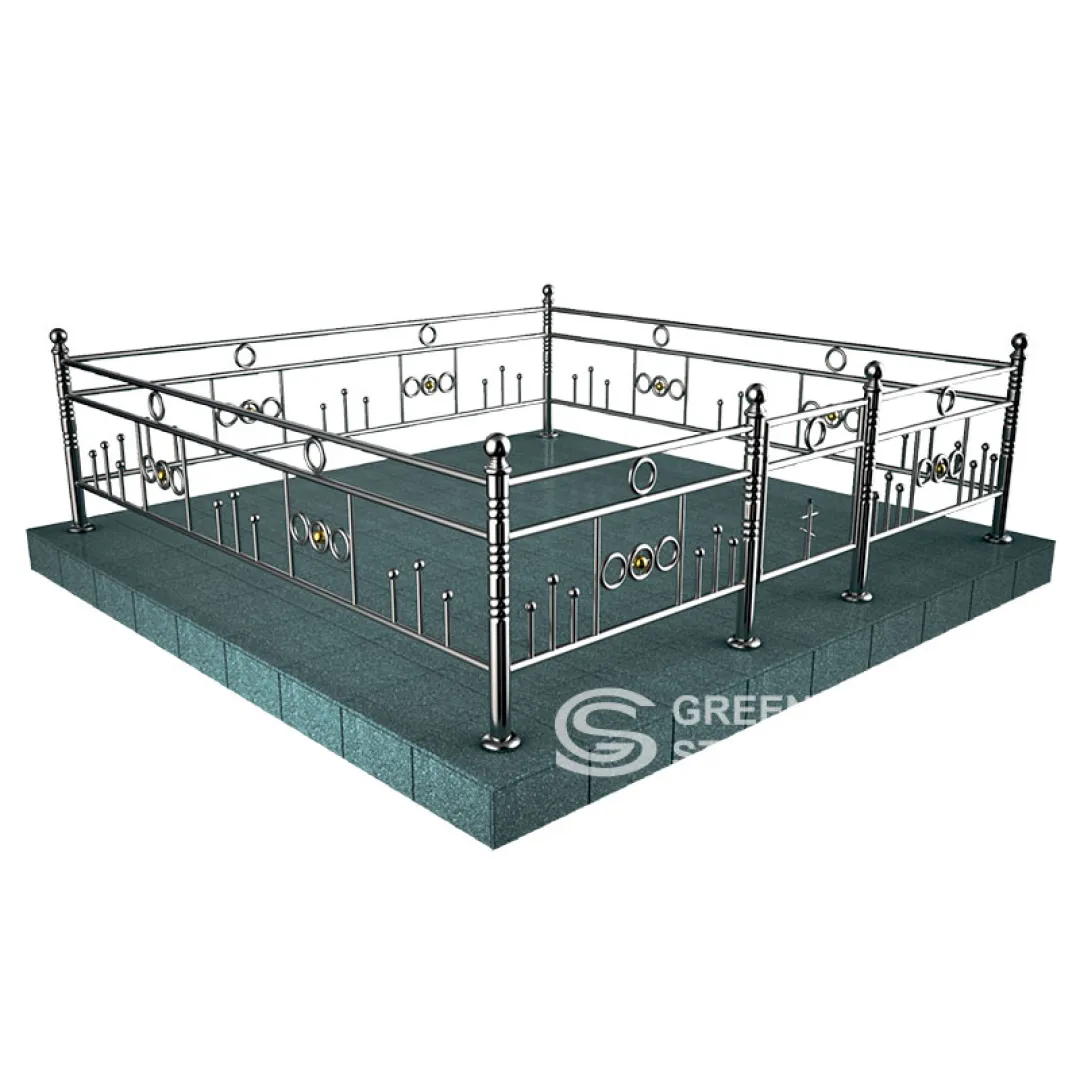 Ограды из нержавейки занимают промежуточную нишу и, пожалуй, являются одним из наиболее сбалансированных и универсальных решений для создания ограждения на участке с захоронением. Вариант ОН-28 высотой 80см. станет прекрасным выбором для оформления композиции любого размера. Нержавейка выглядит нарядно и радикально снижает градус трагизма, украшая даже массивные черные мемориалы.
