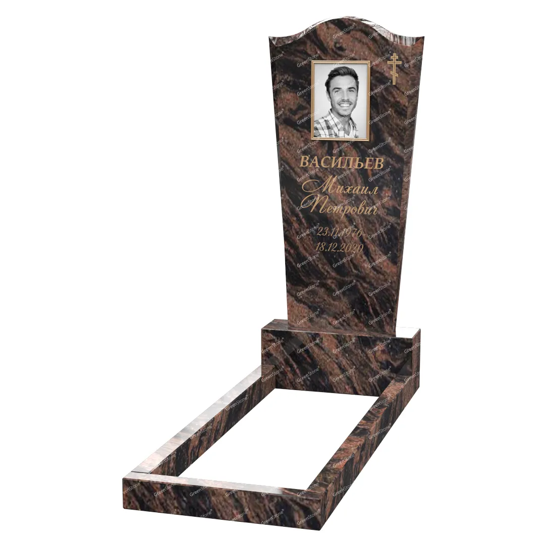 Для изготовления данного изделия использован гранит Indian Aurora (Индия), но мы можем предложить целый ряд других исполнений различных оттенков и фактур. Благодаря наличию широкой гаммы гранита, мы можем сделать даже самую традиционную форму уникальной в своем роде. Памятник из гранита раскрывает все свои свойства при правильной и профессионально выполненной установке. Оформляйте заказ под ключ, и вы не будете разочарованы качеством нашей продукции и услуг.