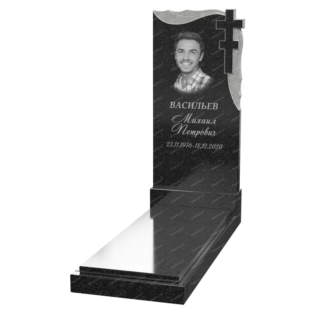Для изготовления данного изделия использован гранит Габбро-диабаз (Россия), но мы можем предложить целый ряд других исполнений различных оттенков и фактур. Благодаря наличию широкой гаммы гранита, мы можем сделать даже самую традиционную форму уникальной в своем роде. Памятник из гранита раскрывает все свои свойства при правильной и профессионально выполненной установке. Оформляйте заказ под ключ, и вы не будете разочарованы качеством нашей продукции и услуг.